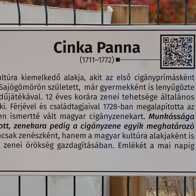 A helyi roma muzsikusokra emlékező névsortábla a nagybaracskai temetőben található.