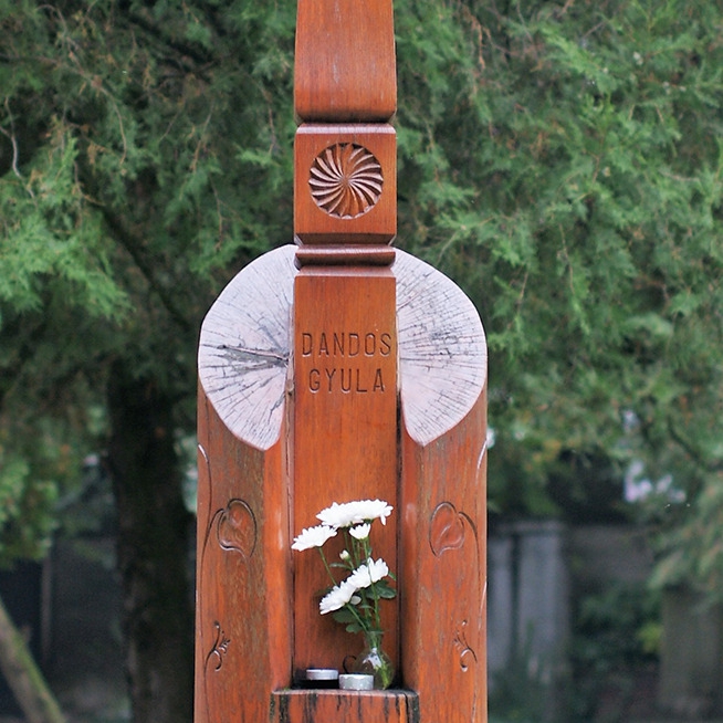 Dandos Gyula 1956-os roma szabadságharcos volt. A Nyíregyháza Északi temetőjében neki állított jelfát 2010.02.26-án leplezte le Csabai Lászlóné, Nyíregyháza Megyei Jogú Város polgármestere és Balogh Artúr, a Cigány Kisebbségi Önkormányzat elnöke. Az alkotás készítője Schmidt Sándor népi iparművész volt.