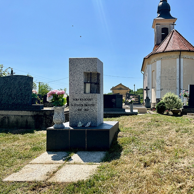 A második világháborúban elhurcolt romákra emlékező Roma Holokauszt Emlékmű a dobozi temetőben található