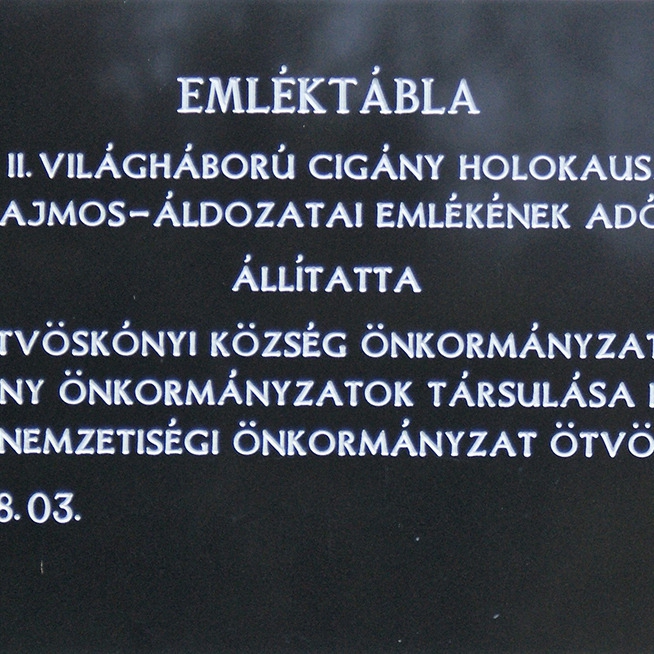 A II. világháború alatt megtörtént roma holokauszt cigány áldozatainak állít emléket az emléktábla, amit 2018-ban állíttatott fel Ötvöskónyi Község Önkormányzata, a barcsi Cigány Önkormányzatok Társulása és az ötvöskónyi roma nemzetiségi önkormányzat.