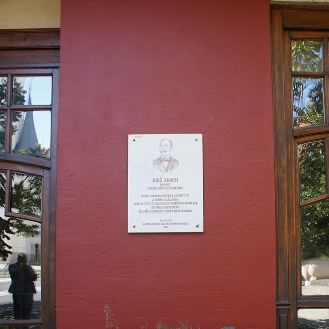 A tábla szövege: Szolnok és az Alföld népszerű prímásának emlékét őrzi e tábla.
